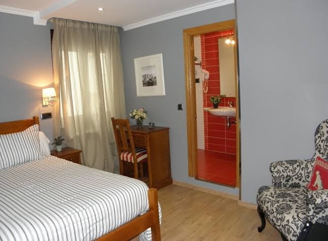 About a min off Camino del Norte. There are supermarkets and restaurants around. I've tried a few at 8 pm but it seems like 8:30 pm is the norm in this town. The room is clean. Yeah, this peregrino isn't looking for much. Close to the route, food and supplies are all that a pilgrim needs.